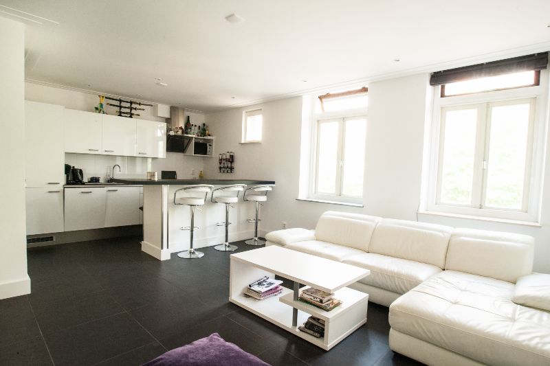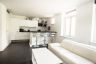 Dit partement is voorzien van een geheel nieuwe keuken waarbij het blok en de apparatuur op een nieuwe plek in de ruimte zijn geplaatst. Het plafond is aangepast en voorzien van de afzuiging en verlichting op de juiste plaats.